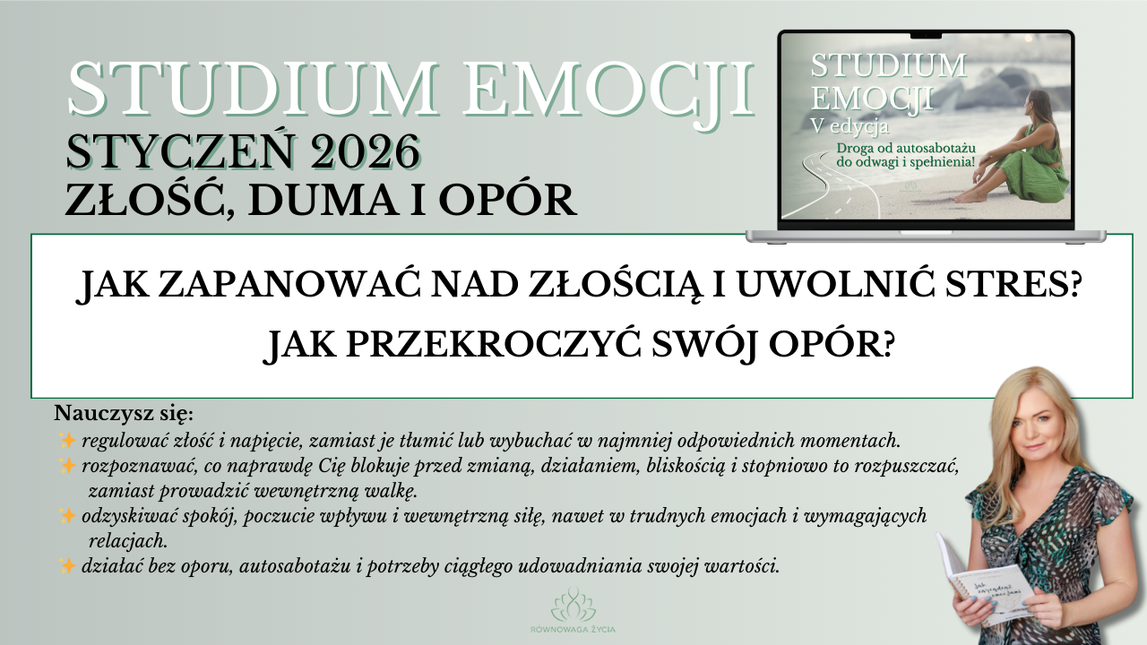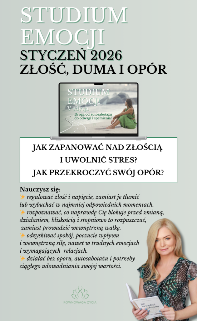 To cykl warsztatów online, stworzony z myślą o osobach, które chcą nauczyć się radzić sobie z emocjami oraz tworzyć swoje życie w sposób bardziej świadomy. Każde spotkanie to doświadczanie innej emocji. Podczas warsztatów, dowiesz się więcej na temat emocji i nauczysz się uwalniać emocje czyli zmieniać swoją energię.